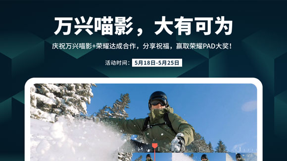 庆祝万兴喵影+荣耀达成合作,喵酱送福利!喵影助力你的创作,让你“大有可为”!分享祝福,赢取荣耀PAD大奖!