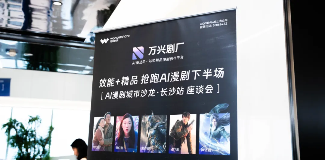 4月3日,AIGC软件A股上市公司万兴科技(300624.SZ)联合聚恒科技园、马栏山网络人士联谊会,在长沙举办“效能+精品,抢跑AI漫剧下半场”——AI漫剧城市沙龙首站座谈会。活动围绕AI漫剧产业趋势、技术应用及产业出海等议题,以万兴科技旗下AI驱动的一站式精品漫剧创作平台万兴剧厂(reelmate.cn)为核心展开交流,推动AI内容生产从“工具提效”走向“工业化与精品化生产”。